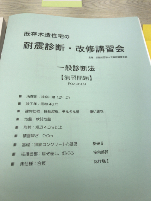 耐震診断は 建築士の資格を持っていて、かつ、この講習を修了していないとできないとのことなので必死でした。