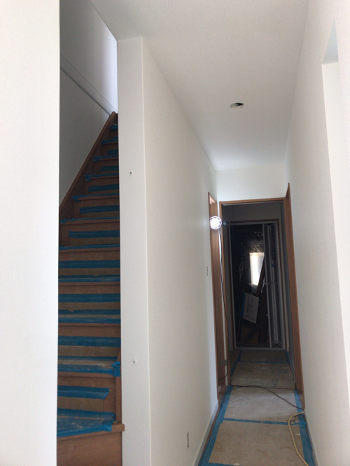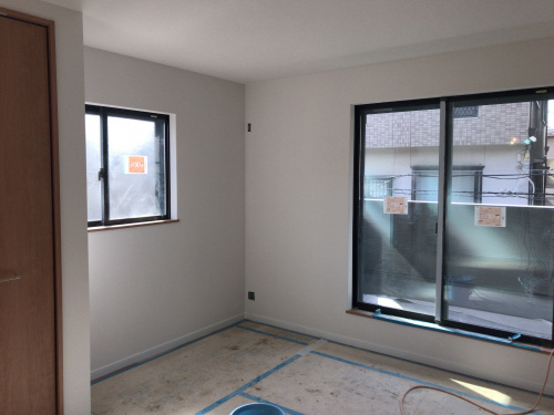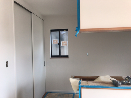 いよいよ内部のクロス(壁紙)貼りがスタートしました。クロス張りが進むと完成がいよいよ近づいてきたなぁという感じがします。