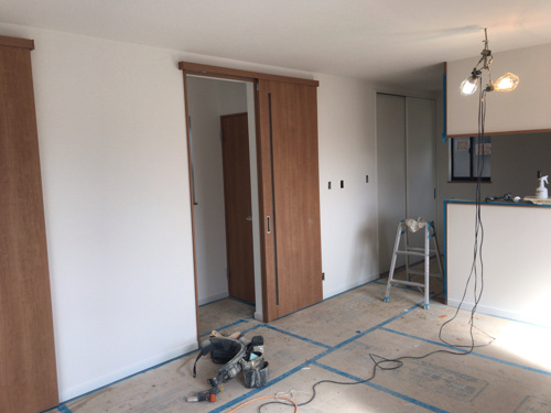 後は設備がついて床の養生が取れてハウスクリーニングと外構で完成となります。いい感じの仕上がりになりそうです(^-^)/