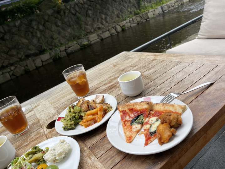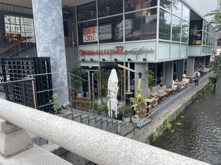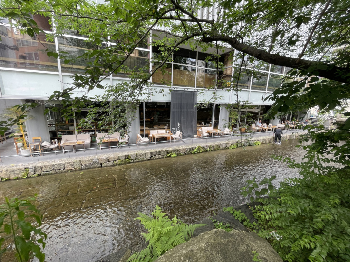 すぐ横に高瀬川が流れていて、すごく雰囲気のいいレストランです。
